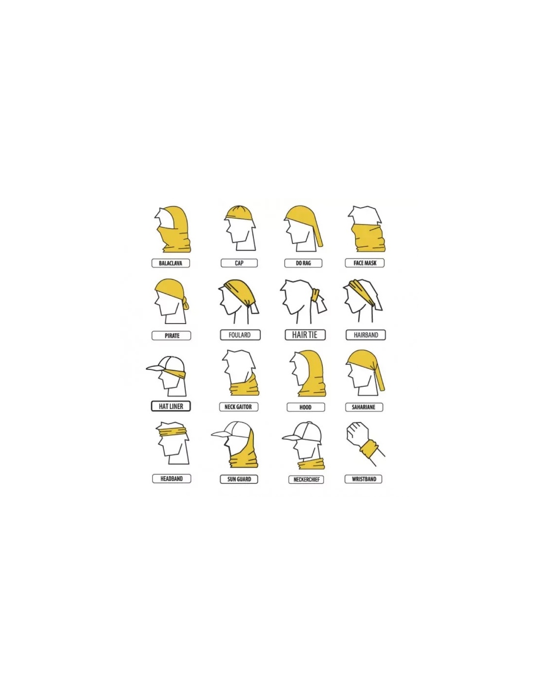 • Jeden model możesz nosić na wiele sposobów, m.in. jako: chustę, czapkę, maskę, kominiarkę i wiele innych