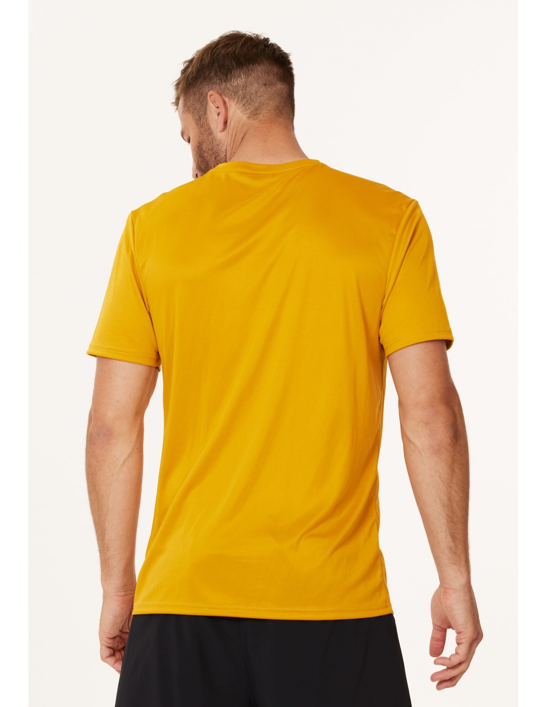 Koszulka ma regularny krój, który zapewnia swobodę ruchów bez nadmiernego opinania sylwetki. Okrągły dekolt nadaje jej klasyczny, sportowy wygląd, a krótkie rękawy sprawiają, że model dobrze sprawdza się zarówno solo w cieplejsze dni, jak i jako pierwsza warstwa pod bluzę lub kurtkę treningową. Minimalistyczny design został uzupełniony o elementy odblaskowe, które poprawiają widoczność po zmroku i w gorszych warunkach oświetleniowych.