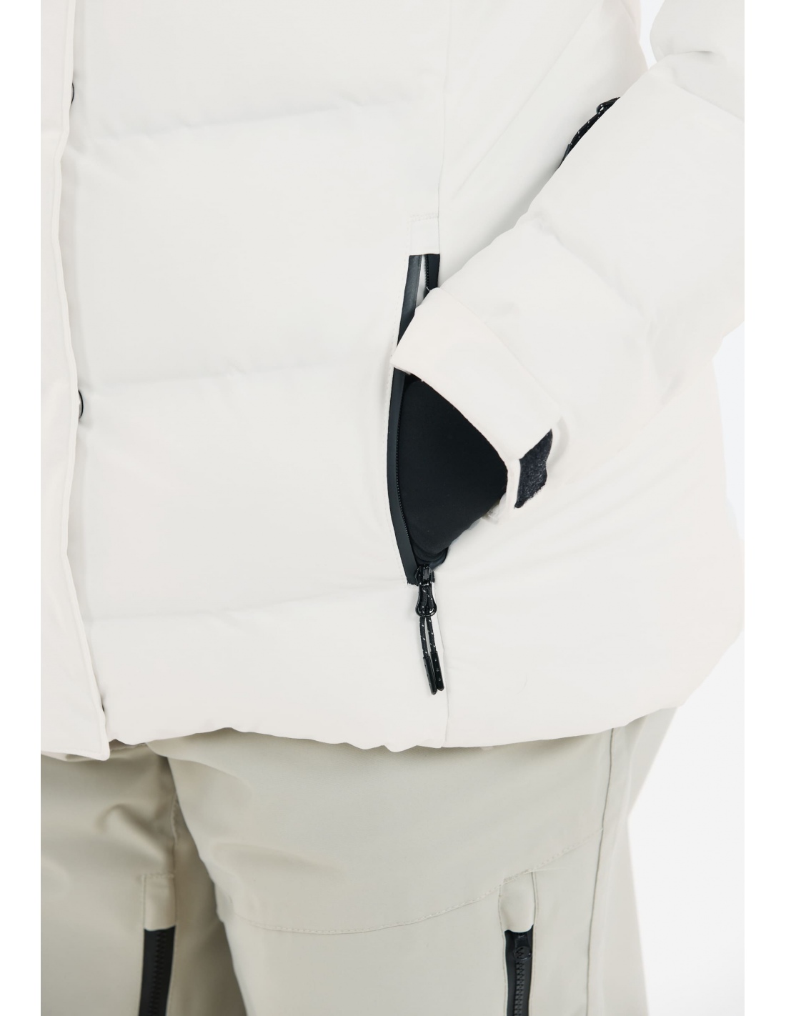 Funkcjonalne kieszenie: Kieszeń na skipass na rękawie, kieszenie boczne oraz wewnętrzna.