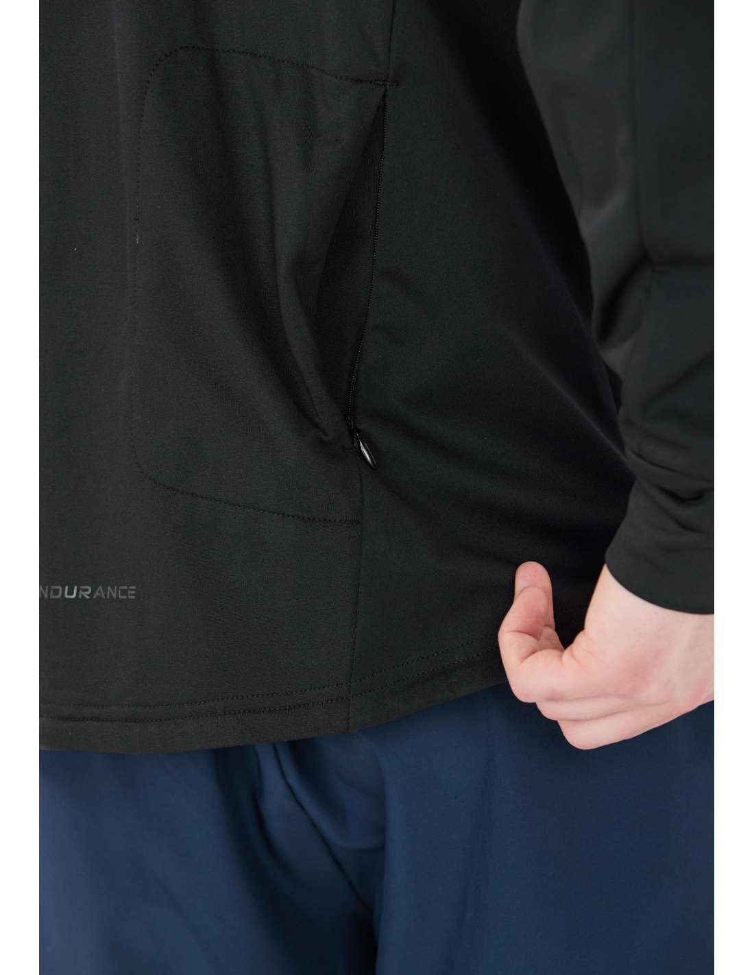 Praktyczne kieszenie zapinane na zamek – boczne i tylna – pozwalają bezpiecznie przechowywać drobiazgi podczas treningu.