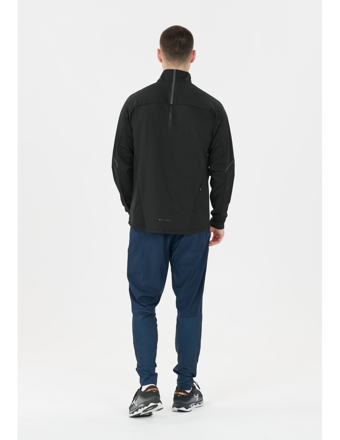 Lekka konstrukcja o regularnym kroju i długości do bioder sprawia, że model sprawdza się nie tylko na trasach biegowych, ale też w codziennym użytkowaniu — jako softshell na chłodniejsze dni.