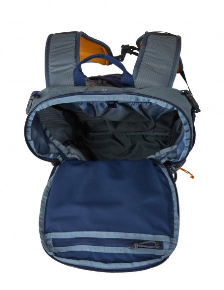 Wyprofilowane szelki i oddychający tylny panel gwarantują komfort podczas długich wędrówek, a praktyczne kieszenie na szelkach – elastyczna na bidon i zamykana na telefon – ułatwiają szybki dostęp do najpotrzebniejszych rzeczy. Wyściełany pas biodrowy z kieszeniami poprawia rozłożenie ciężaru, a podwójne pasy piersiowe zapewniają stabilność, niezależnie od intensywności ruchu. Boczne paski kompresyjne pozwalają zmniejszyć objętość plecaka, gdy nie jest całkowicie wypełniony, a boczne kieszenie na butelki umożliwiają łatwy dostęp do wody.