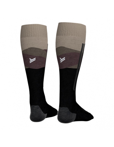 Projektanci Halti zadbali o newralgiczne punkty narciarza. Wzmocniona strefa na goleniach działa jak poduszka, redukując bolesny ucisk języka buta podczas pochylania się do przodu. Dodatkowe strefy wentylacyjne na podbiciu i goleni usprawniają cyrkulację powietrza. Skarpety posiadają anatomiczny krój, który idealnie opina stopę, zapobiegając zwijaniu się materiału i powstawaniu otarć. Całość dopełnia subtelny wzór inspirowany krajobrazem Północy.