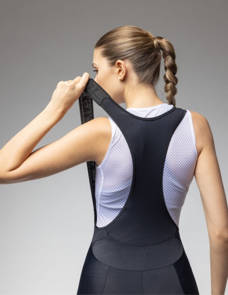 Główny panel spodenek wykonano z technicznej tkaniny Tecno Power, która charakteryzuje się świetną elastycznością i odpornością na mechacenie, zapewniając jednocześnie delikatną kompresję wspierającą mięśnie uda. Z tyłu zastosowano lekki panel z siateczki (Mesh Light), który w połączeniu z wysokiej jakości szelkami gwarantuje doskonałą cyrkulację powietrza i stabilne trzymanie spodenek na miejscu.