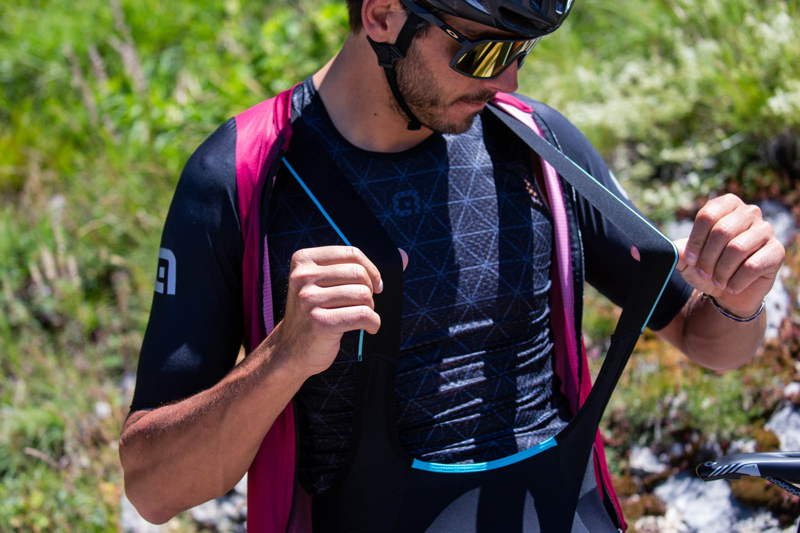 Szelki wykonane są z połączenia Aero Mesh Superlight lekkiej i oddychającej siateczki z dużymi otworami, oraz Am Carbon Fiber, czyli włókna węglowego. Węgiel działa antystatycznie, rozpraszając ładunki nagromadzone podczas wysiłku fizycznego. Chroni przed bakteriami i zapobiega osadzaniu się zanieczyszczeń na powierzchni spodenek. Dodatkowo przyspiesza odparowywanie potu, co w konsekwencji utrudnia tworzenie się wilgoci na skórze.
